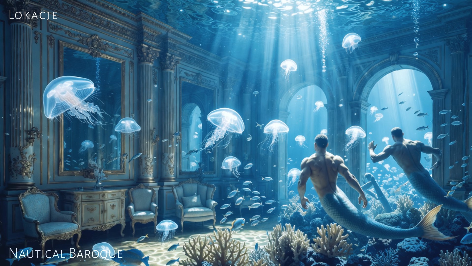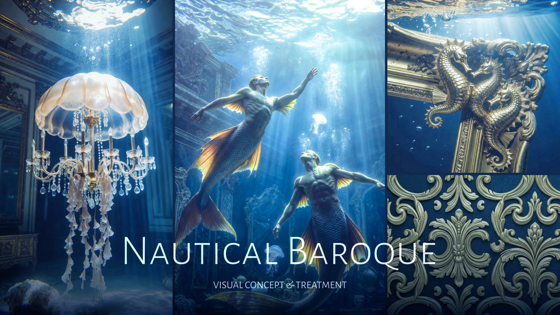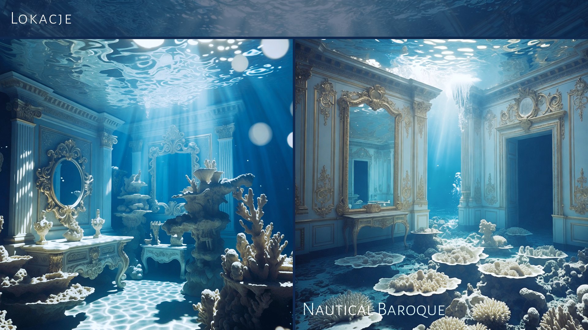 Koncepcja wizualna łącząca estetykę barokowego przepychu z podwodnym surrealizmem. Projekt zawiera propozycje scenografii (Set Design), lokacji oraz castingu postaci
