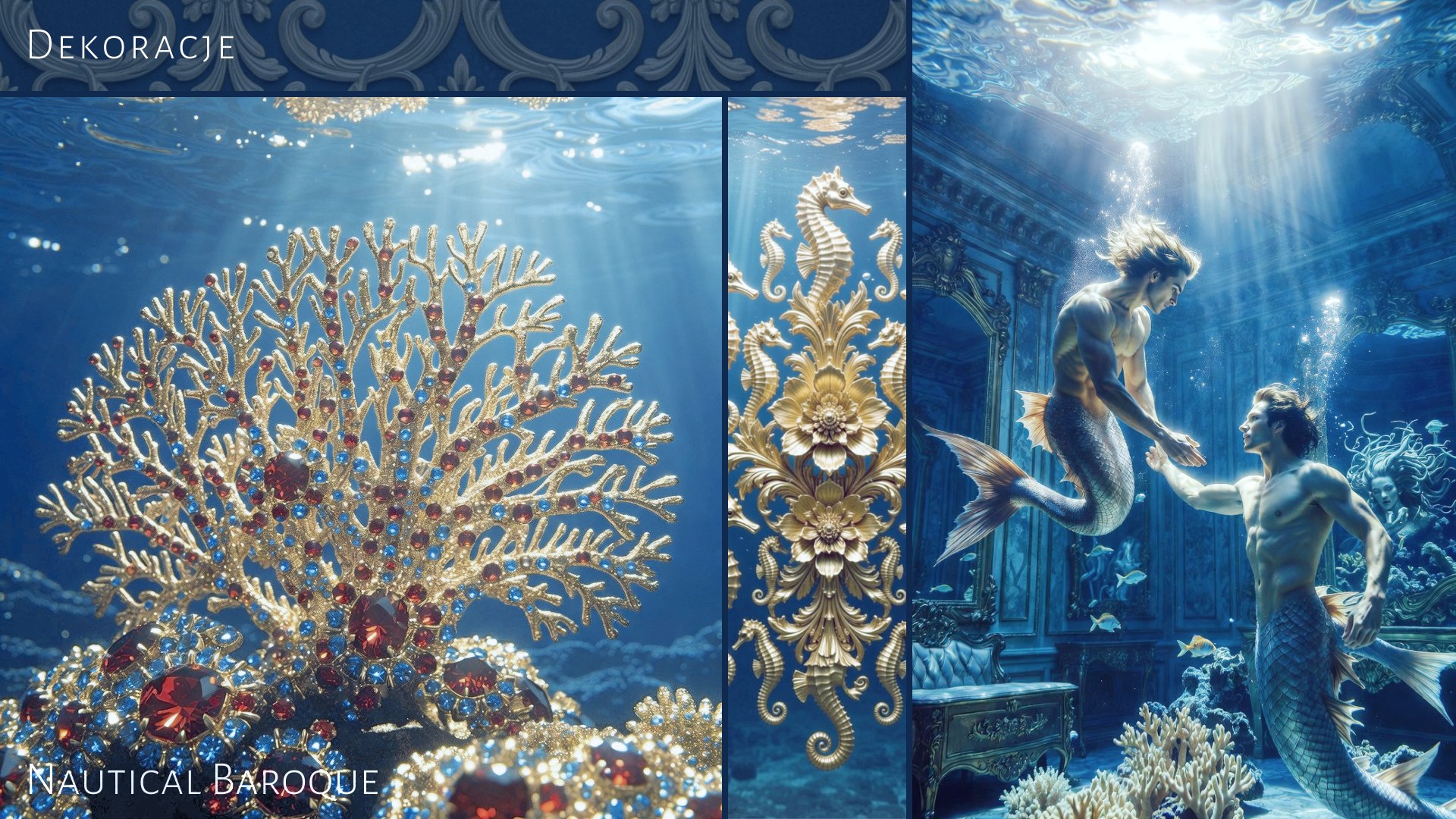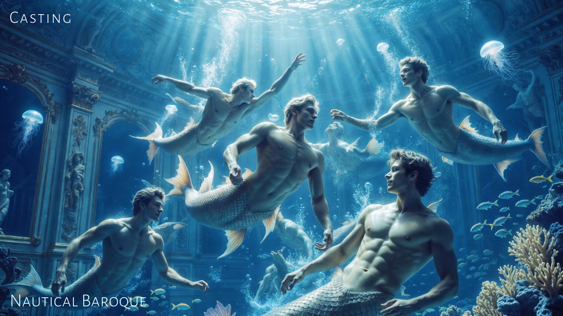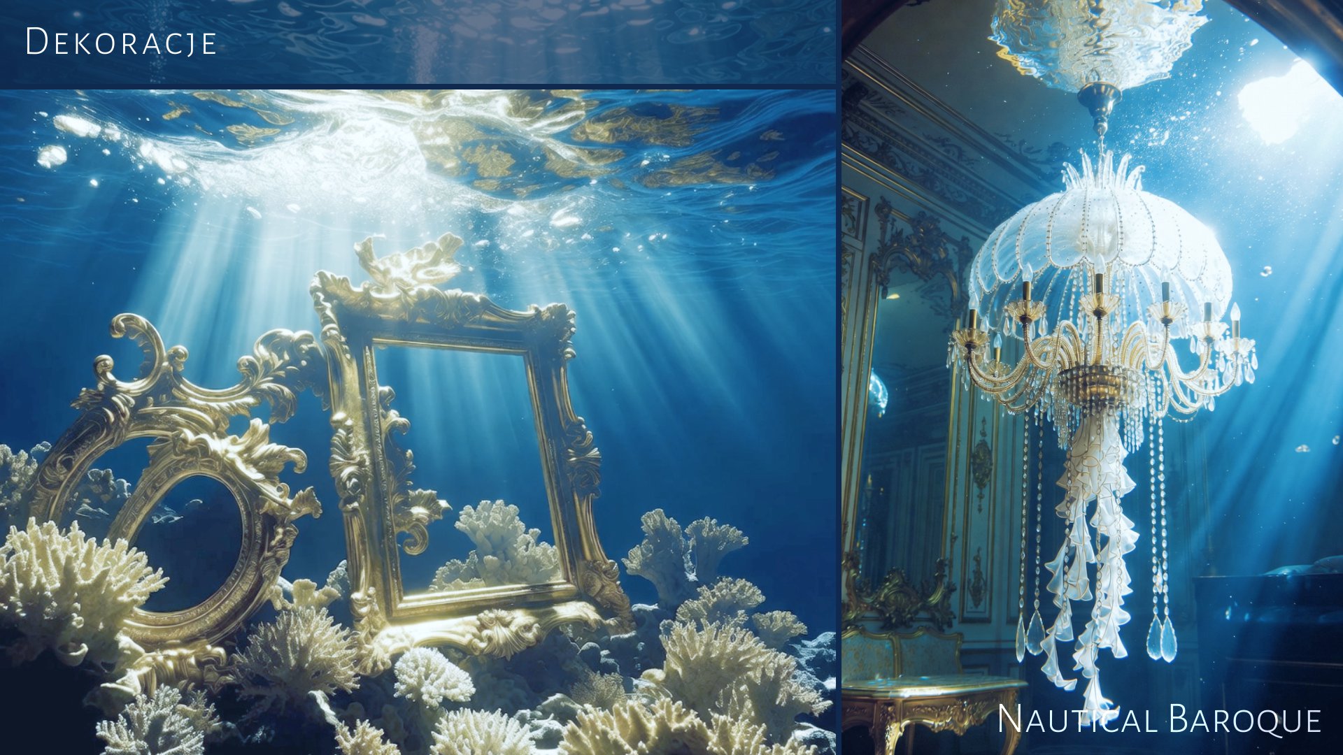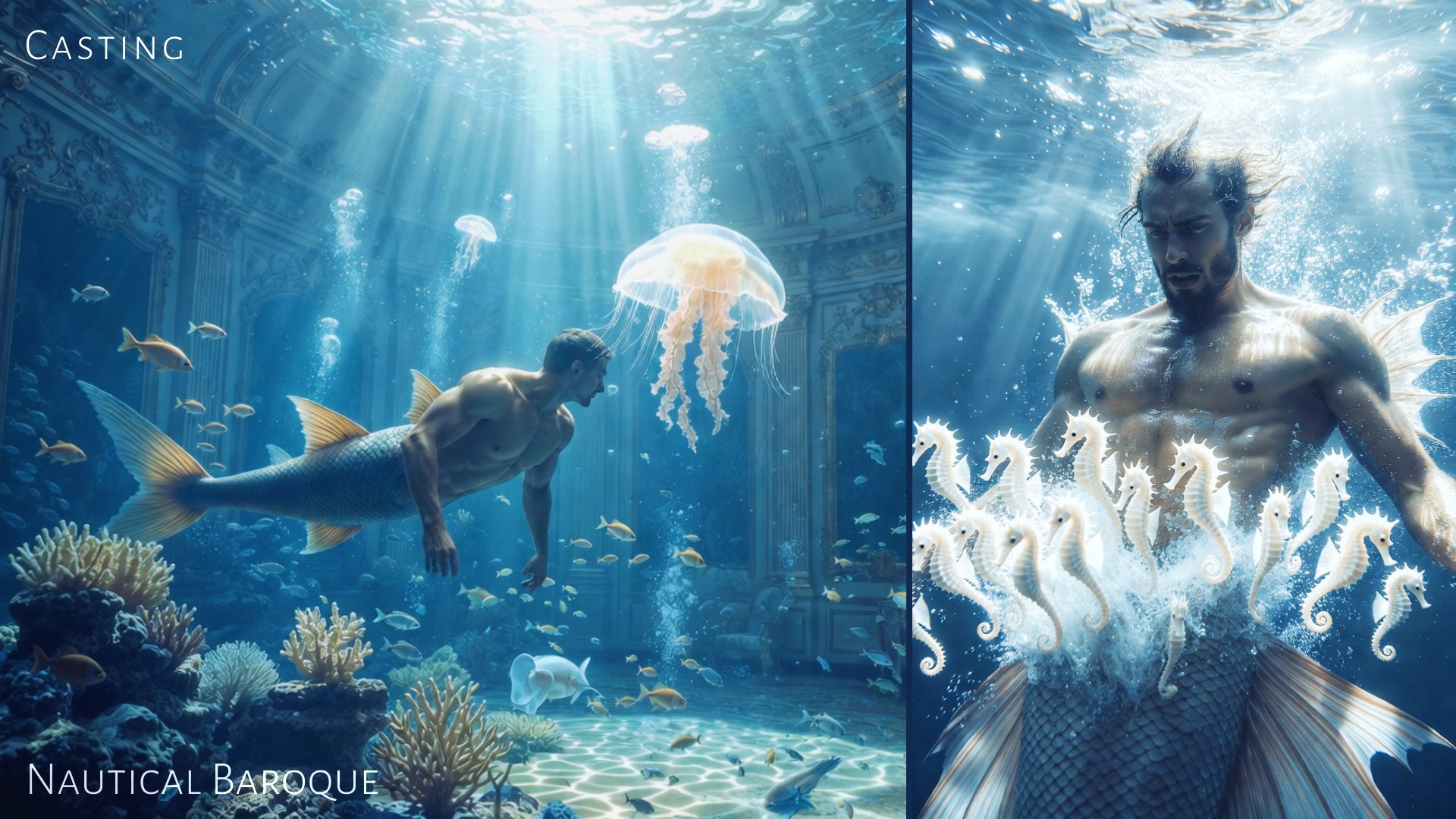 Koncepcja wizualna łącząca estetykę barokowego przepychu z podwodnym surrealizmem. Projekt zawiera propozycje scenografii (Set Design), lokacji oraz castingu postaci